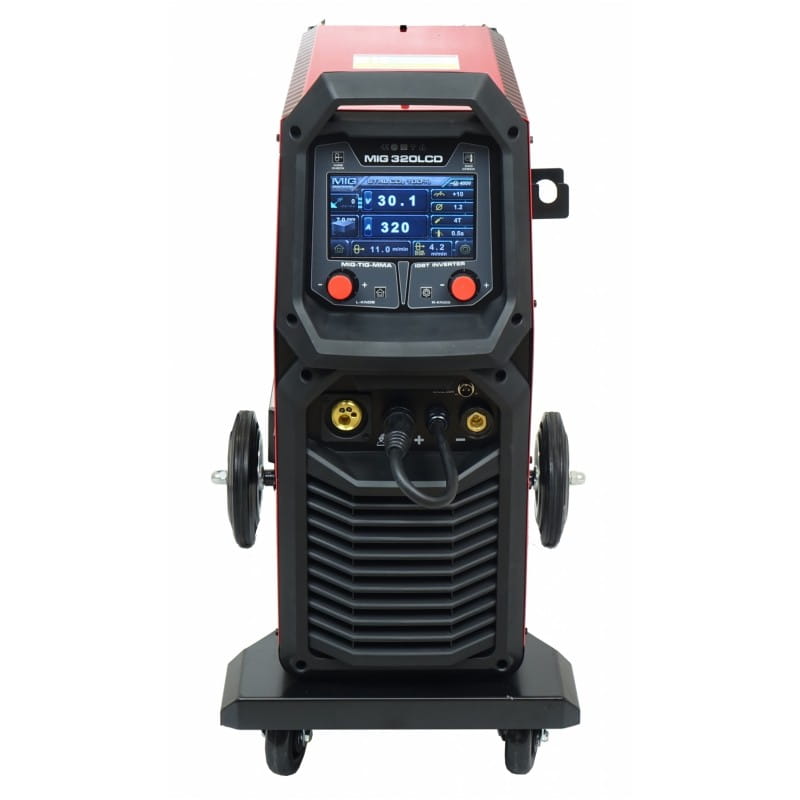 Spawarka IDEAL TECNOMIG 320 LCD - jest to profesjonalny półautomat przystosowany na duże szpule D300 o wadze do 15 kg. Posiada 4-rolkowy mechanizm podawania drutu i zasilany jest z sieci trójfazowej 400V. Półautomat ten służy do spawania aluminium i jego stopów, stali nierdzewnej, stali węglowej i niskostopowej oraz lutospawania blach ocynkowanych. Ten migomat ma wiele funkcji, dzięki którym spawanie MIG i MAG zyskuje wyższy poziom.